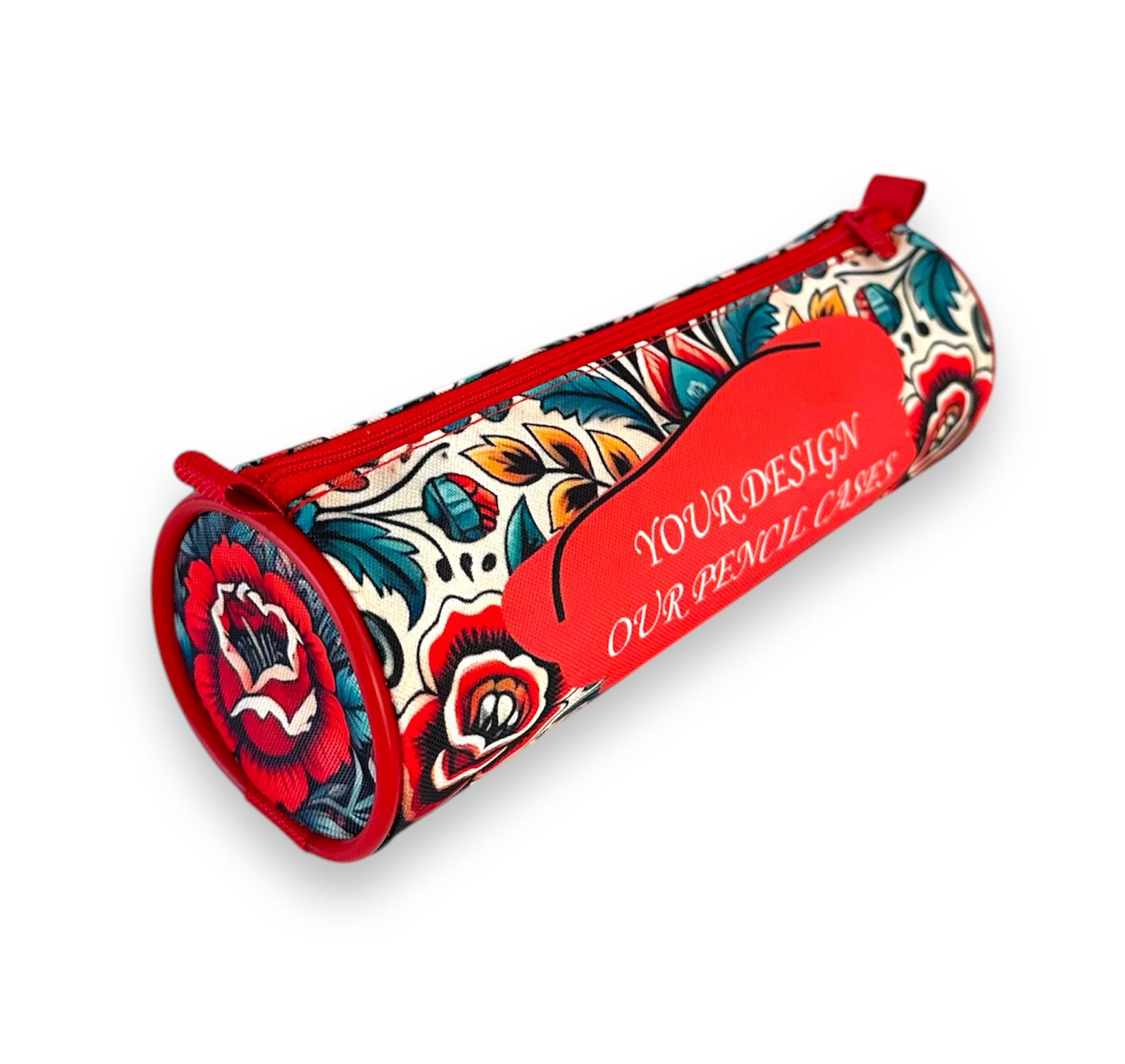 Powłoka zewnętrzna piórników wykonana jest z tkanin 100% poliestrowych z pokryciem PCV. Nadruk wykonany techniką druku sublimacyjnego wg projektu klienta w pełnej kolorystyce.
