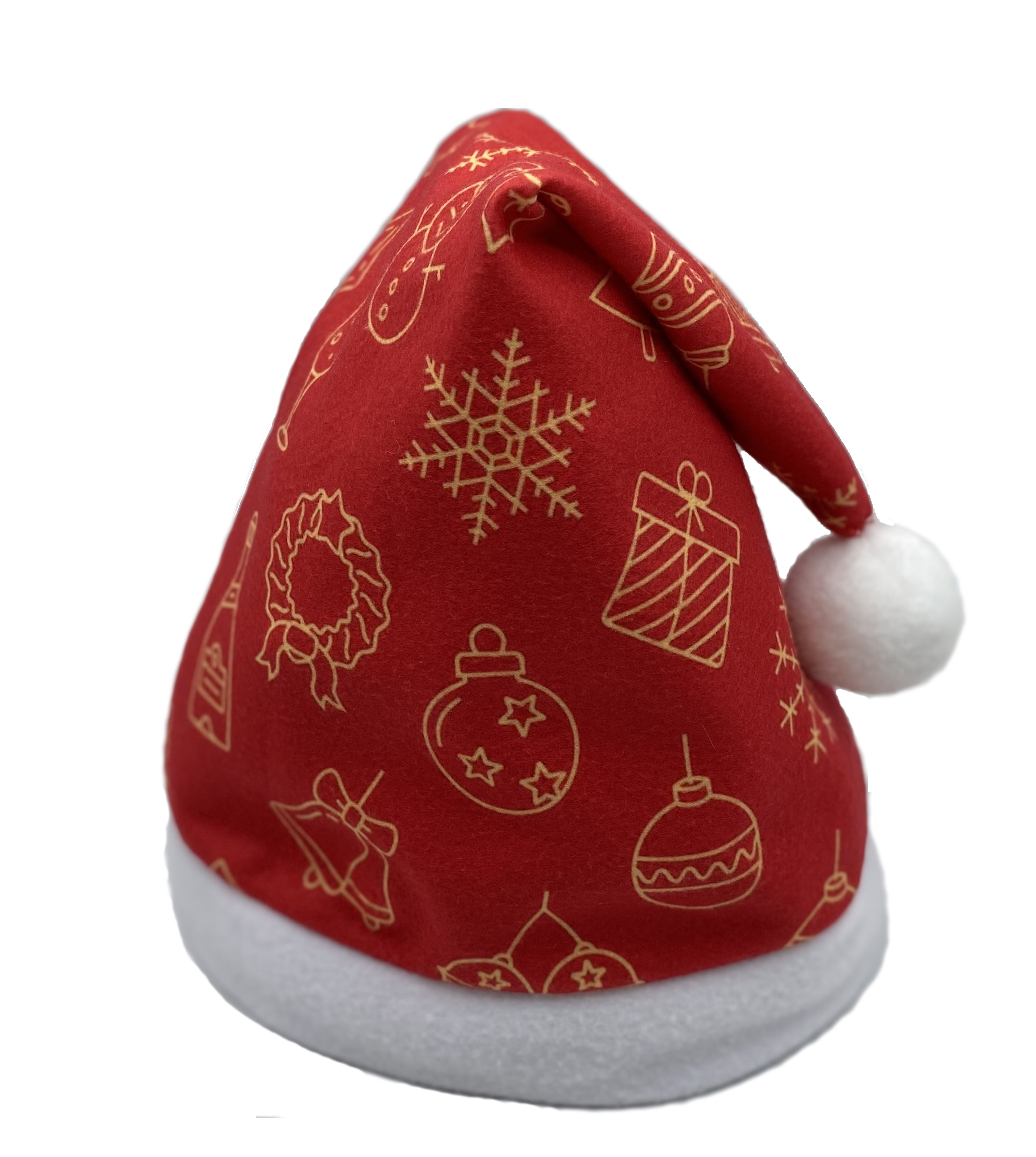 Przedstawiamy czapki świąteczne uszyte z polaru, z pełnym zadrukiem na całej powierzchni, z doszytym białym otokiem i białym pomponem.